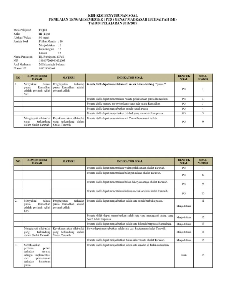 Contoh soal pts uts mapel fiqih kelas 5 mi semester 2 kurikulum 2013 ruang .